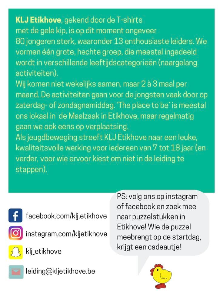Beste leden, ouders en sympathisanten van KLJ Etikhove